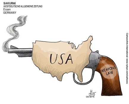 وجاء هذا الرسم في نفس الجريدة للتعبير عن محاولة تشريع قانون لتقنين الأسلحة في الولايات المتحدة الأمريكية: