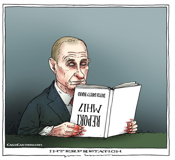 وعن التدخل الروسي في سوريا أيضا جاء هذا الرسم في نفس الموقع، والذي يصور يدي الرئيس الروسي، فلاديمير بوتين، وهما غارقتان في الدماء.