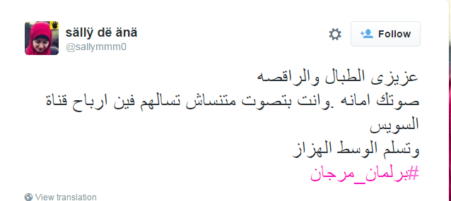 وعلقت sällÿ dë änä ساخرة: “عزيزي الطبال والراقصة صوتك أمانة. وانت بتصوت متنساش تسألهم فين أرباح قناة السويس وتسلم الوسط الهزاز”.