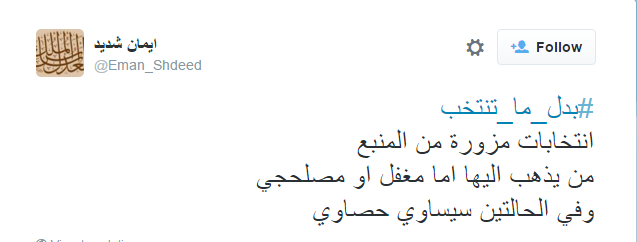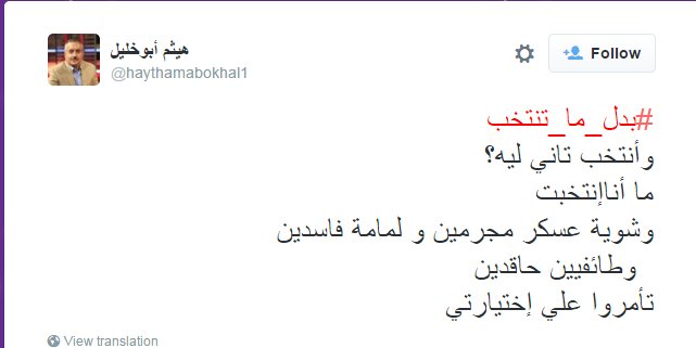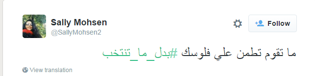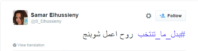 :Samar Elhussieny “#بدل_ما_تنتخب  روح اعمل شوبنج”.