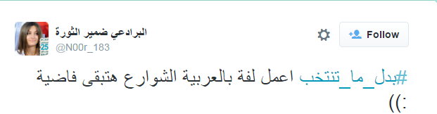 NOOR  : “#بدل_ما_تنتخب اعمل لفة بالعربية الشوارع هتبقى فاضية”.