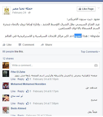 في هذا التقرير الإستقصائي، تكشف “رصد” العلاقة بين نظام السيسي والمراكز اليمينية المتطرقة والمعادية للإسلام، دائمة المديح والثناء على النظام، والذي يستقبل ما تروجه بحفاوة بالغة، ليتم ترويج هذه الرسائل الإعلامية، من قبل الأذرع الإعلامية المؤيدة للسيسي وتتناقلها صفحات الـ”فيس بوك” الداعمة للنظام، في منظومة متناغمة من الدعاية والتلميع والترويج للنظام المصري.