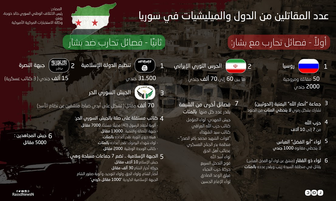 نستعرض لكم أهم الفصائل المحاربة في سوريا بالأرقام حتى وقتنا هذا:
