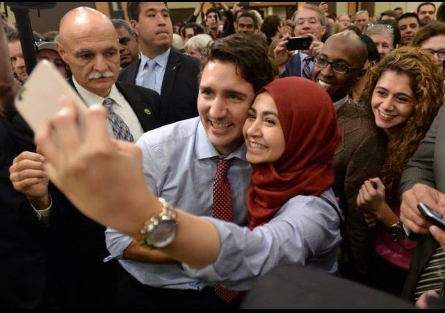 وجه رئيس الوزراء الكندي المنتخب، جاستن ترودو، التحية لسيدة مسلمة محجبة التقته قبل الانتخابات، وقال: “هناك آلاف القصص التي أريد أن أحكيها لكم، ولكن هناك قصة بالتحديد أود أن أشركم فيها. في الأسبوع الماضي التقيت في سانت كاثرين مع أم شابة ترتدي الحجاب، وقدمت لي ابنتها وقالت لي شيئا لن أنساه: أريد أن أصوت لكم حتى يكون لابنتي مستقبلا تختار فيه حقها وأن الحكومة ستحميها”.