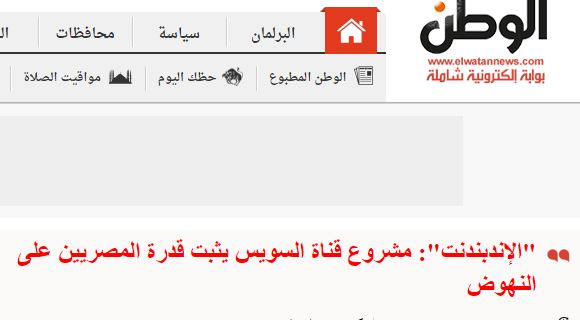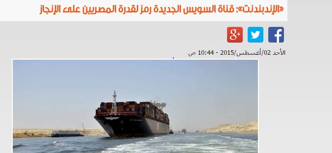 واكتفت صحيفة “فيتو” المملوكة لرجل الأعمال نجيب سويرس، “بتقرير مختصر بعنوان”: الإندبندنت: قناة السويس الجديدة رمز لقدرة المصريين على الإنجاز.