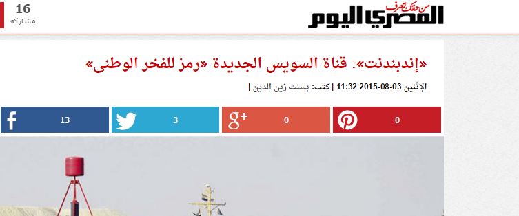 وبالنظر إلى ما ترجمته الصحف المصرية “الخاصة” نقلا عن الإندبندنت، نجد أنها قد تجاهلت تماماً أكثر من نصف التقرير و لم تشر إلى أي شئ منه فاختارت المصري اليوم عنوان “إندبندنت”: قناة السويس الجديدة «رمز للفخر الوطنى» ” ولم تشر من قريب أو بعيد إلى الإنتقادات التي وجهتها الصحيفة إلى المشروع وجدواه الإقتصادية.