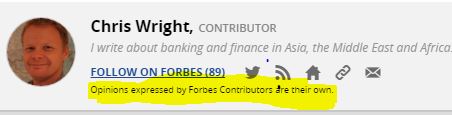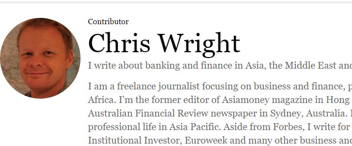 ووصفت الصحف الثلاث كاتب المقال “كريس رايت” بأنه محلل اقتصادي بالمجلة، لكن عبر توثيق السيرة الذاتية للكاتب نجد أنه صحفي حر “Freelance ” ولا ينتمي للمجلة إذ يعرف نفسه بأنه صحفي حر متخصص، مهتم بالأعمال والمال .