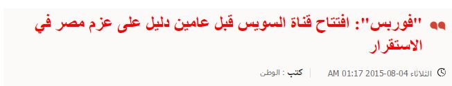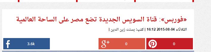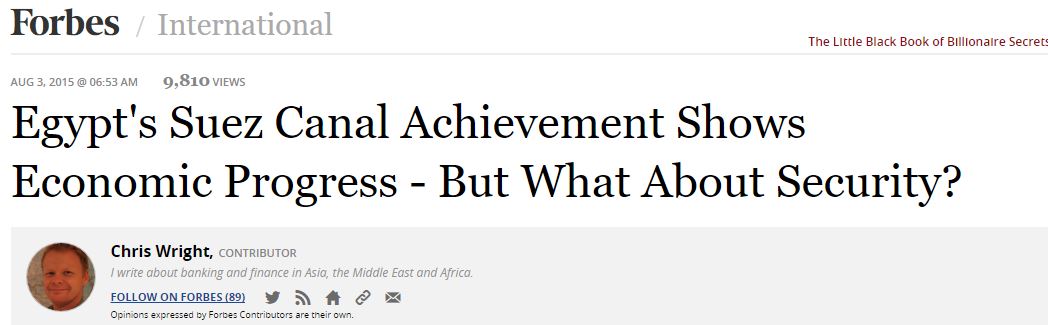 نموذج آخر على تضليل القارئ هو مقال لكاتب رأي متخصص في الإقتصاد بمجلة “فوربس” الأميركية أكبر المجلات الإقتصادية على مستوى العالم بعنوان “إنجاز قناة السويس يظهر التقدم الإقتصادي.. لكن ماذا عن الأمن؟”.