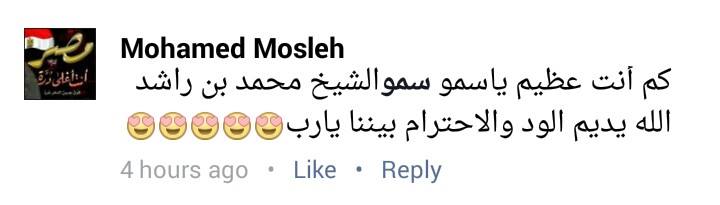 وقال محمد مصلح: “كم أنت عظيم سمو الشيخ محمد بن راشد الله يديم الود والاحترام بينا يا رب”.