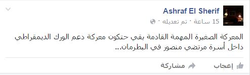 وسخر أشرف الشريف، محاضر العلوم السياسية في الجامعة الأميركية، قائلا: “المعركة الصغيرة المهمة القادمة بقى هتكون معركة دعم الورك الديمقراطي داخل أسرة مرتضى منصور في البطرمان…“.