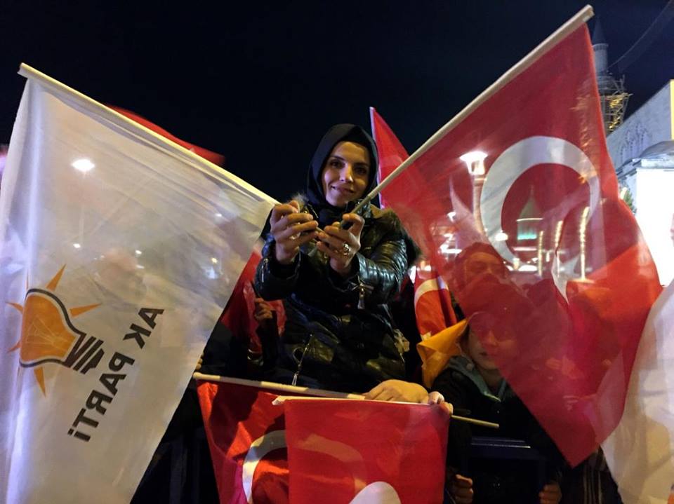 وخرج الأتراك شبابا وفتيات كبارا وصغارا في الشوارع حاملين أعلام حزب العدالة والتنمية وصور الرئيس التركي رجب طيب أردوغان، للاحتفال بفوز الحزب وتقدمه على الأحزاب المنافسة له خلال جولة الإعادة.