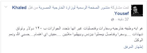 وتساءل Khaled Yousef: “هو إيه وظيفة الخارجية والسفارات والقنصليات غير إنها بتجدد الجوازات بـ١٢٠ دولار، وتوثق شهادات … وسفرا وقناصل بيعملوا ببزنس وبيهلبوا ملايبن… مفيش أي اهتمام… حسبي الله ونعم الوكيل”.