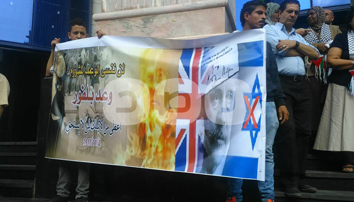 كما نظمت “الحملة الفلسطينية لمقاضاة المملكة المتحدة”، في اليوم ذاته، وقفة صامتة أمام سلالم نقابة الصحفيين في الذكري الـ98 لإعلان وعد بلفور الذي تم سنة 1917.