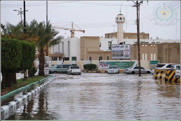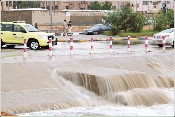 غمرت المياه شوارع محافظة ‫رفحاء‬ بالمملكة العربية السعودية، والتي شهدت صباح اليوم الثلاثاء أمطارًا وصفت بـ"المتوسطة".