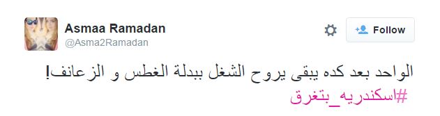 وسخرت Asmaa Ramadan : “الواحد بعد كده يبقى يروح الشغل ببدلة الغطس و الزعانف! “.