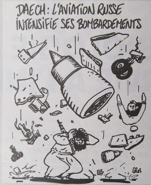 وسخرت نفس الصحيفة أيضًا برسم آخر من إسقاط داعش للطائرة الروسية في صحراء سيناء: