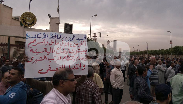 بالصور.. عمال الغزل والنسيج بالإسكندرية يحتجون على تأخر صرف رواتبهم
