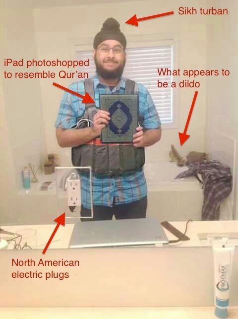 وتابعت الصحيفة : إنه بالرغم من هذا الإنتشار إلا أن الصورة جذبت شكوك مستخدمي مواقع التواصل حولها ،فعند فحص الصورة عن قرب يتبين أن الصورة ” فوتوشوب”إذ انها تحتوي على العديد من العناصر التي من المستبعد أن تكون لأحد العناصر الإسلامية المتطرفة .