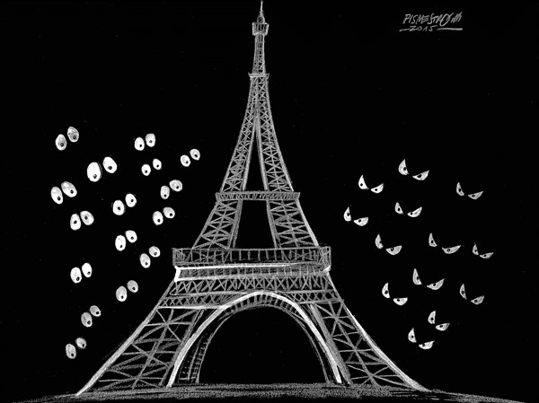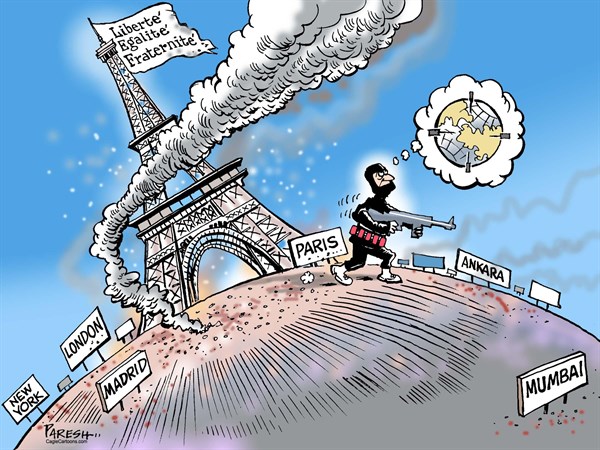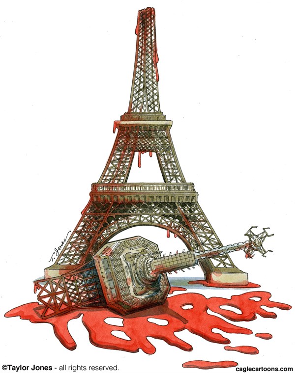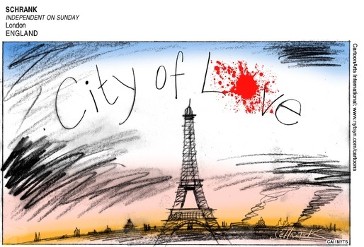 ونشر أيضا “بولتيكال كارتونز” هذا الرسم عن ليلة التفجيرات في فرنسا: