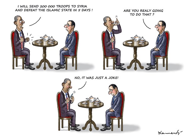وعن توقعات قيام الحرب العالمية الثالثة ضد تنظيم الدولة نشرت “بولتيكال كارتونز” هذا الرسم: