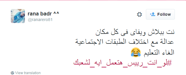 دشن مغردون عبر موقع التواصل الاجتماعي “تويتر”، هاشتاج #لو_انت_رييس_هتعمل_ايه_لشعبك، والذي دخل ضمن قائمة الأعلى تداولًا لدى “تويتر”، عرضوا خلاله ما ينوون فعله للشعب إذا كان أحدهم رئيسًا.