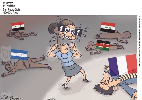 لا يرى العالم إلا ما حدث في فرنسا، وكأنها أزمة نهاية العالم، فنشرت مواقع وصحف الكاريكاتير العالمية تلك الرسوم المعبرة عن واقع أليم تعيشه فرنسا منذ أيام ماضية