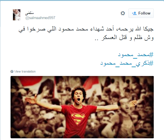 دشن مغردون على مواقع التواصل الاجتماعي هاشتاج #محمد_محمود، تزامنًا مع حلول الذكرى الرابعة لمذبحة محمد محمود، والتي وقعت أحداثها عام 2011 وقامت خلالها قوات الشرطة وقوات فض الشغب بتصفية الثوار جسديًا، خلال اعتصام لهم بوسط ميدان