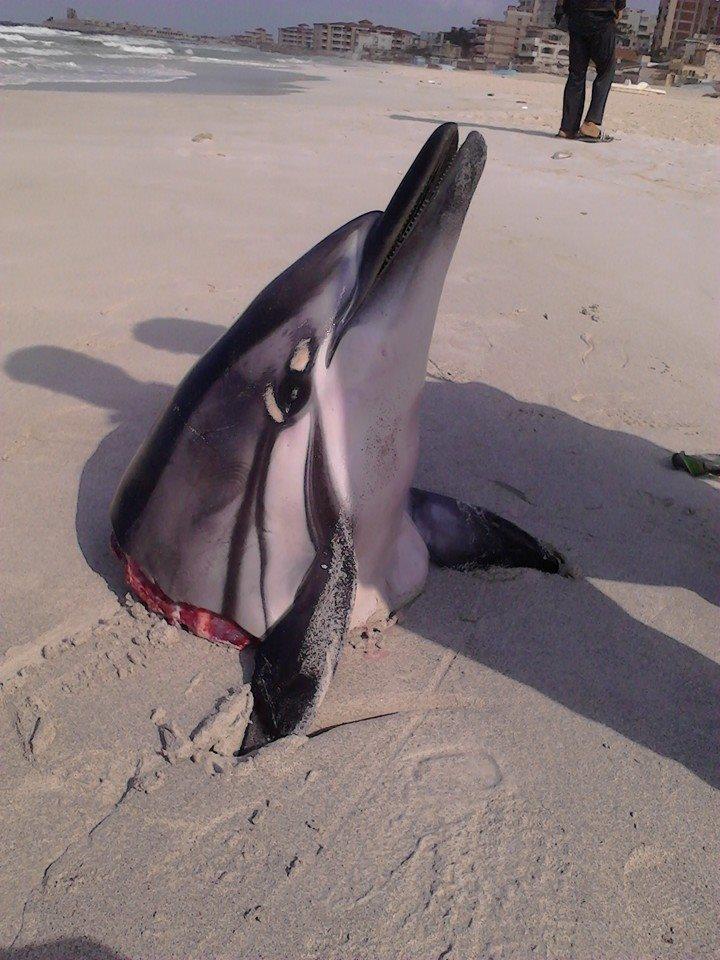 تداول رواد موقع التواصل الاجتماعي فيس بوك صورا لرأس دولفين مقطوع بشاطئ “بيانكي” بالإسكندرية.