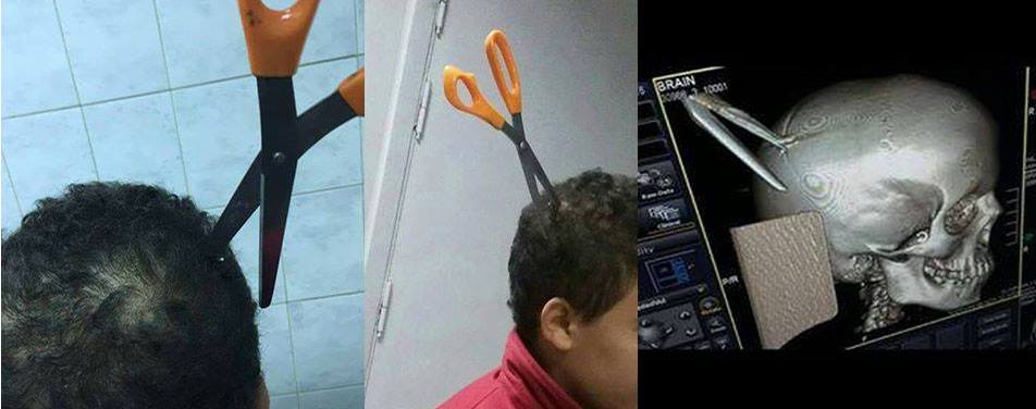 تداول مستخدمو موقع التواصل الاجتماعي فيس بوك، صورا لطفل غرز في رأسه مقص، بالإضافة إلى صور للأشعة المقطعية التي توضح مدى تعمق المقص بجمجة الطفل.