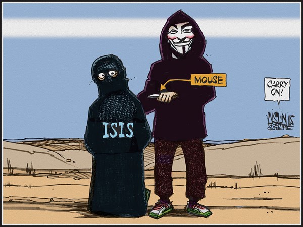 وعن انتقام مجموعة “أنونيموس” وتوعده لتنظيم الدولة، نشر “كاجل” هذا الرسم: