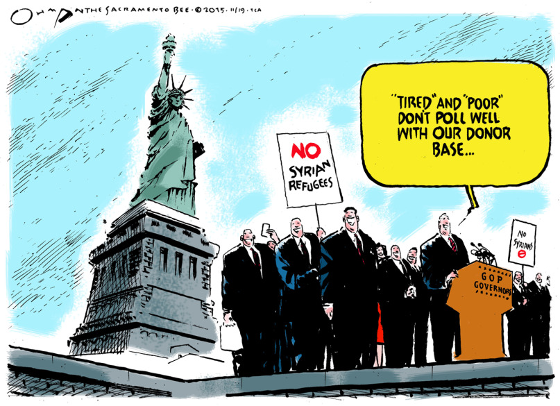 وعن محاولات منع أميركا من استقبال اللاجئين السوريين نشر موقع “ذا ويك” الأميركي هذا الرسم: