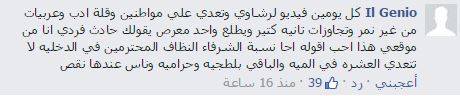 وكتب Genio: “كل يومين فيديو لرشاوى وتعدي على مواطنين وقلة أدب وعربيات من غير نمر، وتجاوزات تانية كتير، ويطلع واحد يقولك حادث فردي، أنا من موقعي هذا أحب اقوله إن نسبة الشرفاء المحترمين في الدخلية لا تتعدى العشرة في المية والباقي بلطجية وحرامية وناس عندها نقص”.