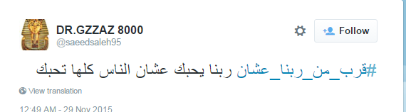 فيما غردDR.GZZAZ بقوله: “#قرب_من_ربنا_عشان ربنا يحبك عشان الناس كلها تحبك”.