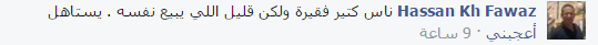 وقال Hassan Kh Fawaz: “ناس كتير فقيرة ولكن قليل اللي يبيع نفسه.. يستاهل”.