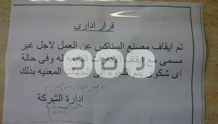 تفاجأ المحتجون، صباح اليوم الأحد، بقرار إداري بإغلاق المصنع لأجل غير مسمى، وكذلك إيقاف العمل بجميع الإدارات التابعة له، في قرار وصفوه المعتصمين بـ”البلطجة”؛ إذ قامت إدارة المصنع برد الصفعة للعمال الذين لا يملكون مصدر دخل آخر غير راتبهم من المصنع.