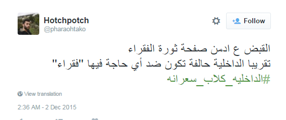 وعلق Hotchpotch : “تقريبا الداخلية حالفة تكون ضد أي حاجة فيها ”فقراء” #الداخليه_كلاب_سعرانه”.