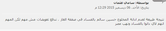 وأكد سامي عثمان، أن هذا القرار نتيجة طبيعة لعدم إدانة حسين سالم بالفساد في صفقة الغاز، وأضاف ساخرًا “ندفع تعويضات مش مهم لكن المهم إنهم لا يدانوا بالفساد ونهب مصر”.