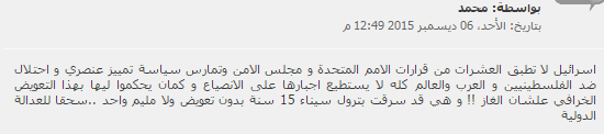وعلق محمد: “إسرائيل لا تطبق العشرات من قرارات الأمم المتحدة ومجلس الأمن وتمارس سياسة تمييز عنصري واحتلال ضد الفلسطينيين والعرب، والعالم كله لا يستطيع إجبارها على الانصياع، وكمان يحكموا ليها بهذا التعويض الخرافي علشان الغاز!! وهي قد سرقت بترول سيناء 15 سنة بدون تعويض ولا مليم واحد.. سحقًا للعدالة الدولية”.
