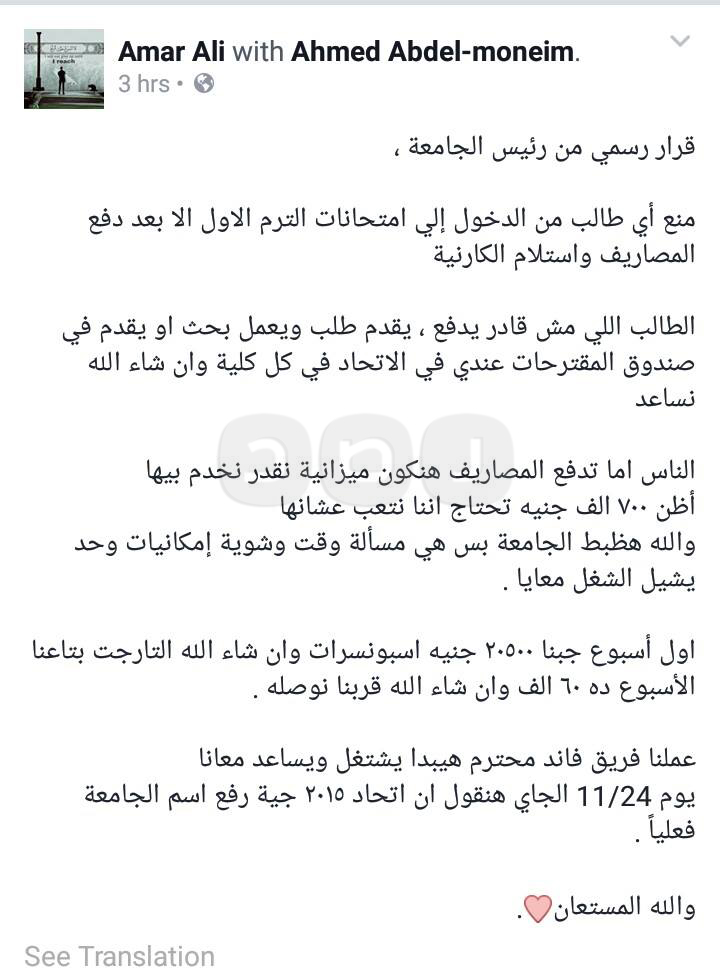 وقال مدرس مساعد بإحدي الكليات معلقًا: “الطلب ربما يكون صائب و لكنه غير مدروس، وربما يعود بالمشاكل على الكثير من الطلاب، الطالب غير القادر يجب أن تكفله و تشجعه الجامعة مش تاخد منه علشان تعمله حفله أو تطلعه رحله”.