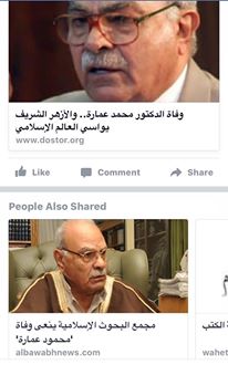 نشرت عدد من الصحف المصرية خبر وفاة د. محمود محمد عمارة عضو مجمع البحوث الإسلامية، وأحد علماء الأزهر البارزين والذي توفي صباح اليوم، مصحوبًا بصورة د. محمد عمارة المفكر الإسلامي البارز ورئيس تحرير مجلة “الأزهر” سابقًا بشكل خاطئ.