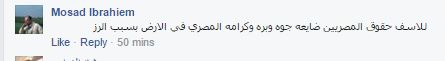 – مسعد إبراهيم: “للأسف حقوق المصريين ضايعة جوه وبره وكرامة المصري في الأرض بسبب الرز”.