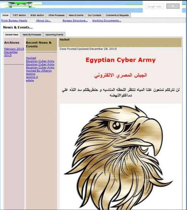 اخترق عدد من القراصنة المصريين الموقع الحكومي لسد النهضة الإثيوبية، محذرين إثيوبيا من منع المياه عن مصر ومهددين بتدمير السد، تاركين رسالة باسم “الجيش المصري الإلكتروني” للجانب الإثيوبي محتواها: