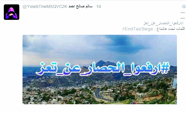 دشن عدد من رواد موقع التواصل الاجتماعي “تويتر” هاشتاج #ارفعوا_الحصار_عن_تعز؛ بهدف إبراز الصورة الحقيقية لتعز وحجم الدمار الذي لحق بها.