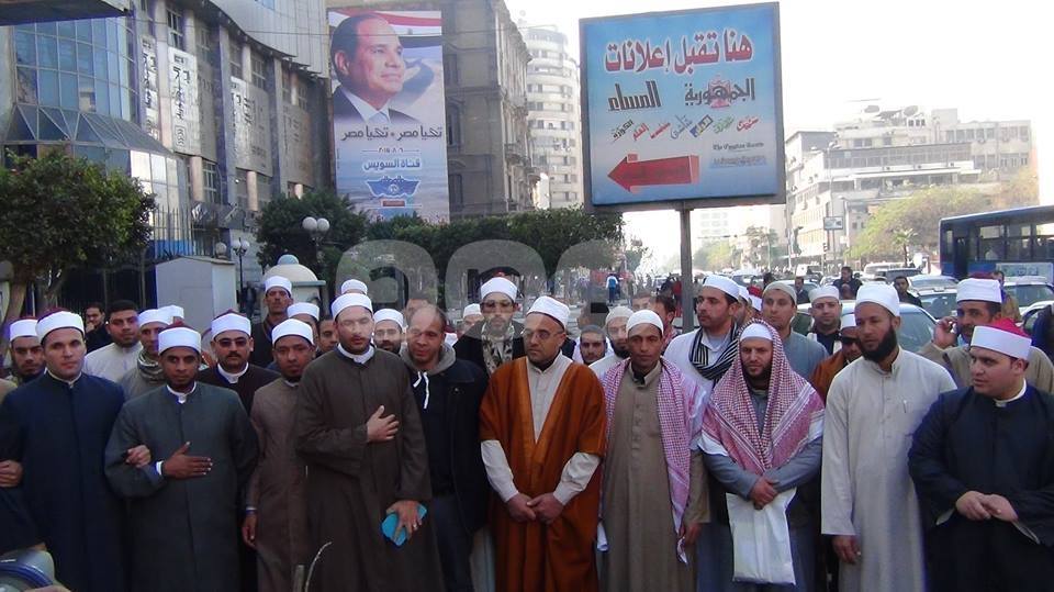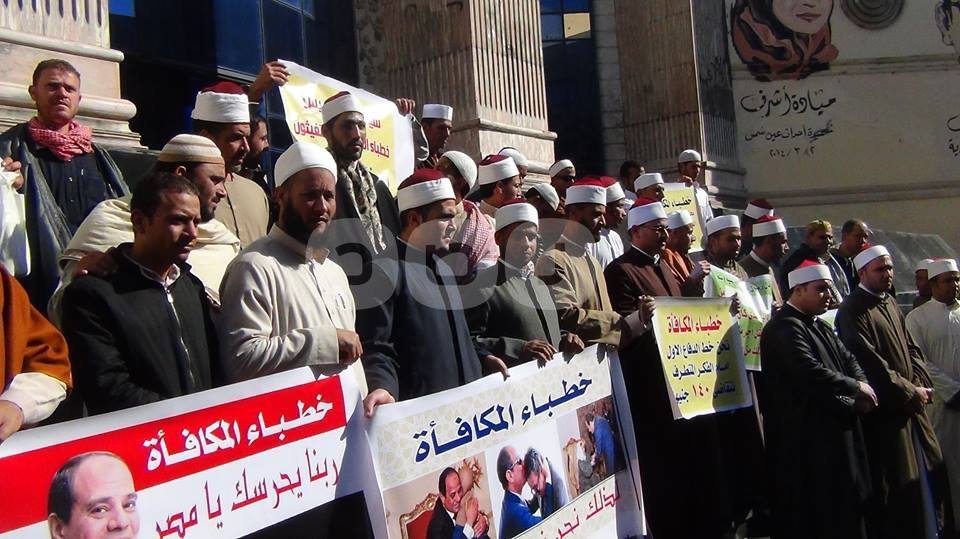نظم عدد من الأئمة العاملين بالمكافأة في وزارة الأوقاف مسيرة احتجاجية من أمام مسجد الفتح برمسيس متجهة إلى نقابة الصحفيين؛ للمطالبة بمساواتهم بزملائهم الأئمة المعينين، وصرف مكافأة مجلس الوزراء.