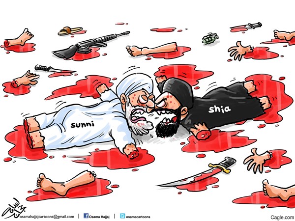 وعن الحرب الدائرة بين السنة والشيعة نشر موقع “بولتيكال كارتونز” هذا الرسم: