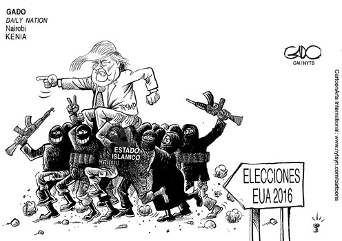 ونشرت “نيويورك تايمز” رسما ساخرا من المرشح ترامب معتبرة إياه مروجا للإرهاب: