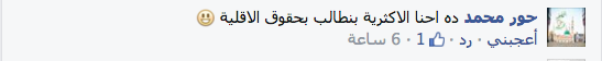 وعلقت “حور محمد” بقولها: “ده احنا الأكثرية بنطالب بحقوق الأقلية”.