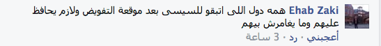 ورأى إيهاب زكي، أن الأقباط “همه دول اللي اتبقو للسيسي بعد موقعة التفويض ولازم يحافظ عليهم وما يغامرش بيهم”.