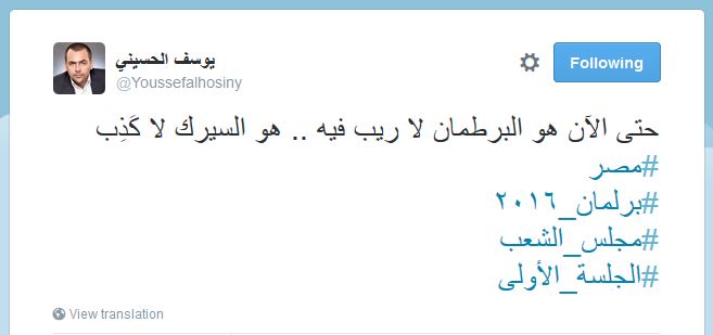 سخر المذيع يوسف الحسيني من البرلمان المصري الذي انعقدت أولى جلساته اليوم واصفا إياه بـ”البرطمان”.
