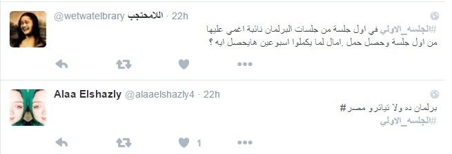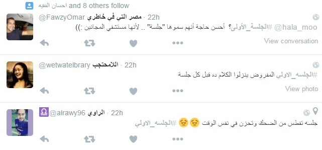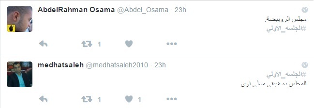 دشن رواد موقع التواصل الاجتماعي "تويتر" هاشتاجا تحت عنوان "الجلسة الأولى" وذلك عقب بدء انطلاق أولى جلسات برلمان 2015 اليوم